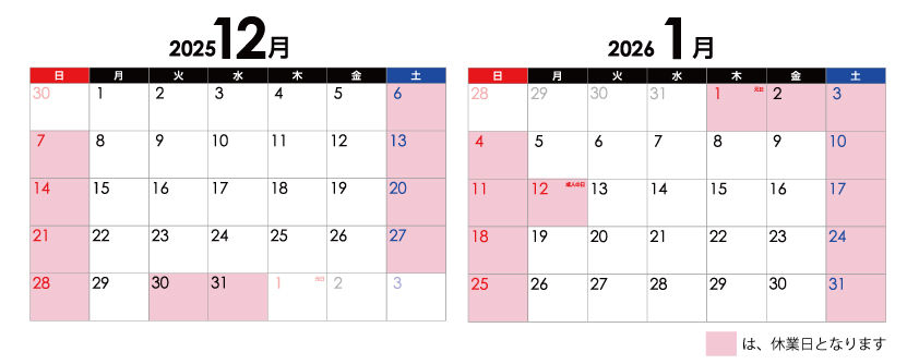 12月30日(火)~1月4日まで年末年始臨時休業とさせていただきます。